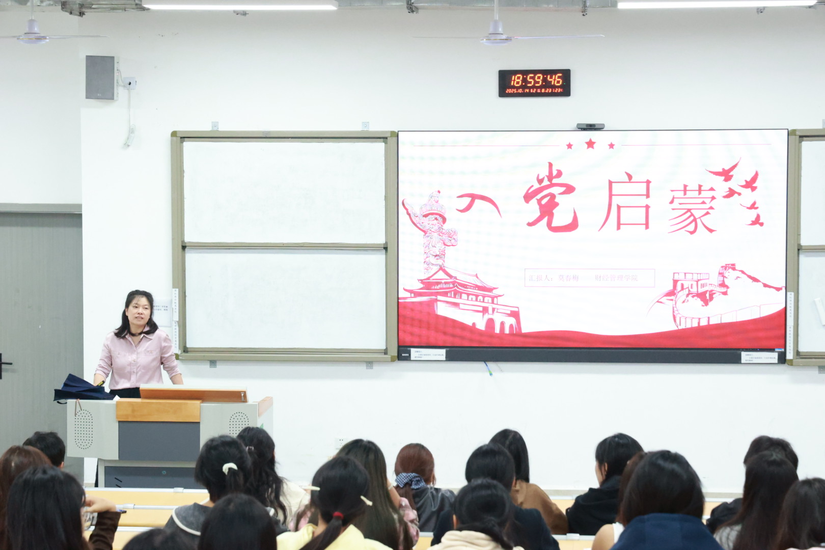 10月14日晚,学院组织员莫春梅在东区A214教室为2025级新生开展入党启蒙教育专题讲座。