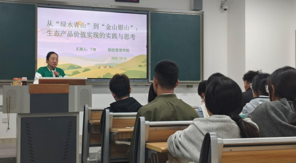 10月21日,物业管理教研室丁艳副教授作题为《从“绿水青山”到“金山银山”:生态产品价值实现的实践与思考》的讲座。她结合川东北生态功能区建设实际,从生态补偿、绿色产业与生态文明教育三方面,系统阐释生态产品价值转化路径,引导学生思考地方生态优势向经济优势转化的实践模式,为区域生态文明建设与绿色发展提供学理参考。