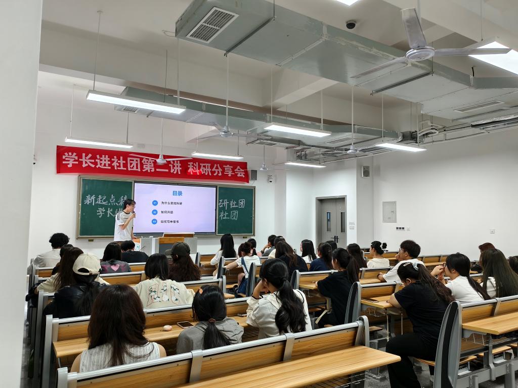 2025年9月27日下午,新起点科研社团学长进社团第二讲在B110顺利召开。本次大会江佳城、胥杰两位学长受邀进行经验分享,新起点科研社团全体成员、学院部分同学参加了此次分享会。