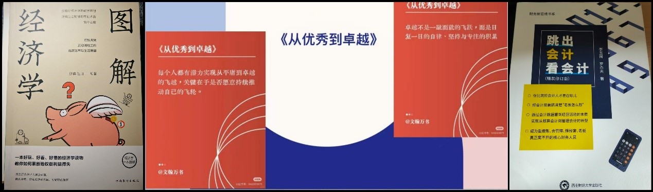朱丽平同学读《跳出会计看会计》后说:“这本书让我从“会计执行者”的视角,升级为“商业观察者+管理参与者”的角色,为后续专业学习和职业规划埋下了“全局思维”的种子。”闫亦菲同学阅读《图解经济学》,“这本书让我跳出“知识记忆”的局限,真正把经济学变成了理解世界的工具、决策判断的思维武器。“方香锦同学阅读《从优秀到卓越》并展开分享,从“持续推动自己的飞轮实现从平庸到卓越的飞越”,到“卓越是日复一日自律、坚持与专注的积累”,结合自身经历畅谈阅读对个人成长与认知提升的启发,在思想的碰撞中深化了对书籍内涵的理解。