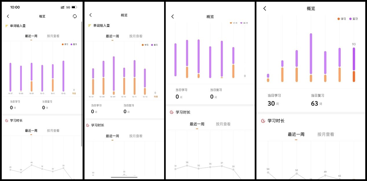 从成员们的学习数据可以看到,大家在单词学习和复习的数量上保持着稳定的节奏,学习时长也呈现出持续的投入,学习是坚持和长期的习惯。