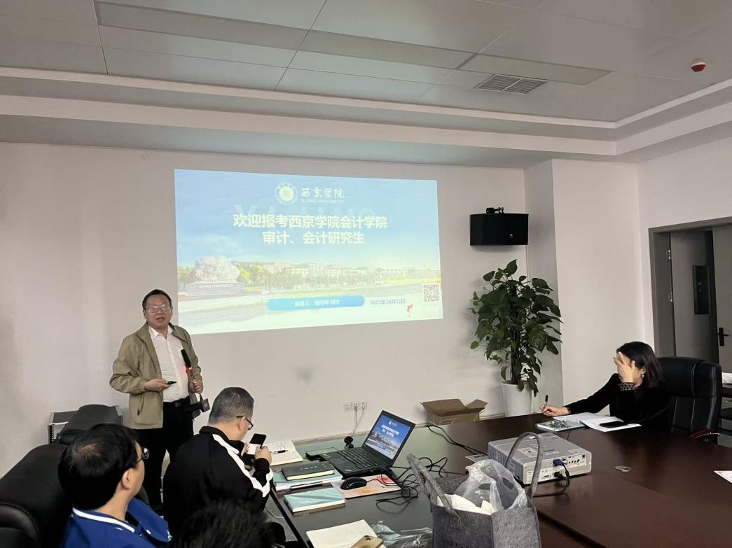 2025 年 10 月 22 日下午,财经管理学院杨均华博士在 A507 会议室进行了西京学院审计学专业、会计学专业的考研宣讲。为学子解读该校会计、审计专业研究生招生政策与培养优势,搭建升学信息桥梁。