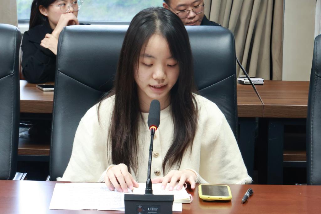 社会实践先进个人代表徐艺娟回顾了其团队从前期资源对接到深度访谈非遗传承人的实践历程。实践的成功离不开团队的紧密协作与学院的全力支持,自己在专业实践、资源整合与团队管理等方面获得了显著成长。