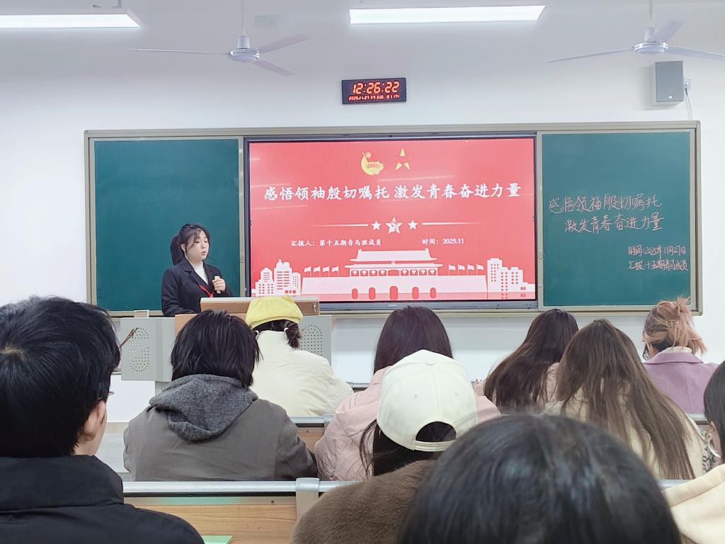 为深入学习贯彻习近平新时代中国特色社会主义思想,加强对青年学生的思想政治引领,激励广大学子坚定理想信念、矢志拼搏奋斗,11月27日中午,学院于东区B310教室成功举办第三期“青马燎原”主题宣讲会。本次活动由学院青年马克思主义者培养班成员李蔺敏主持,吸引了各年级学生踊跃参与。