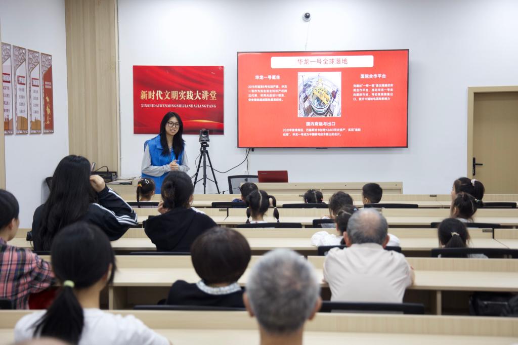 面对少年儿童的认知规律,宣讲团创新采用情景互动、故事演绎等形式,让“两弹一星”精神以趣味化方式走进校园。在小学校内,宣讲员通过角色扮演还原科研先辈的奋斗片段,用卡通化PPT解读“卫星上天、核弹爆炸”的基本原理,设置“我是小小科研家”互动问答环节,将复杂的历史背景与精神内涵转化为孩子们能理解、感兴趣的内容。“邓稼先爷爷隐姓埋名搞科研”“钱学森爷爷毅然回国报祖国”等鲜活故事,在孩子们心中播下热爱祖国、勇于探索的种子,让红色信仰在幼小的心灵中萌芽生长。