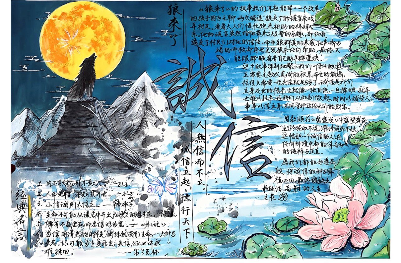 在手抄报创作中,同学们巧妙运用色彩与构图,将诚信典故、名言警句及身边案例融入一幅幅精美的画面,图文并茂地诠释了诚信之美。书法作品则展现了传统艺术的魅力,或楷书端庄工整,或行书洒脱流畅,“人无信不立”“言必信,行必果”等经典词句在笔墨流转间熠熠生辉,传递出深厚的文化底蕴与价值认同。征文活动中,同学们或结合自身经历,讲述诚实守信的动人故事;或引经据典,论述诚信对个人成长与社会发展的重要意义;亦不乏针砭时弊,理性剖析失信之害。文章情真意切、视角多样,充分体现了我校学子求真务实、明理守信的精神风貌。
