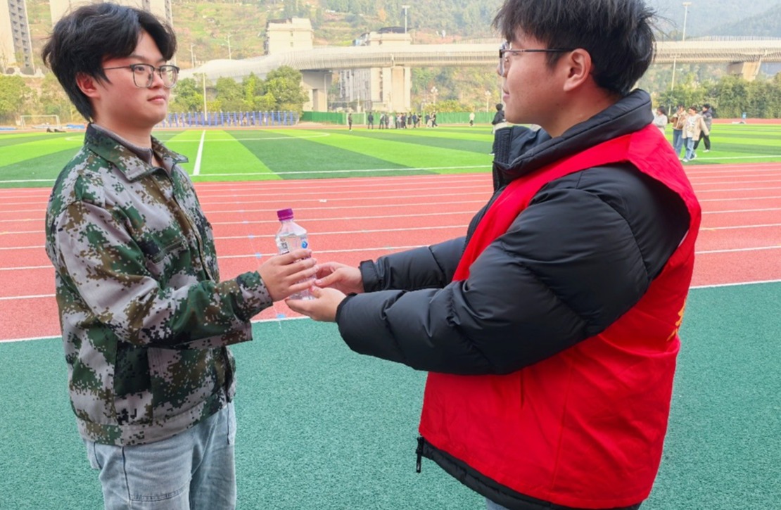 时值大一学子进行冬季军训,学院青协迅速组织起一支精干的“军训护航服务队”。志愿者们身着红马甲,活跃在训练场边,默默提供热水补给、物品看管、应急协助等坚实的后勤保障。他们以无声的陪伴和及时的援助,为紧张严肃的军训生活构筑了一道温暖的“支持防线”,其周到细致的服务赢得了承训教官与参训新生的广泛好评。