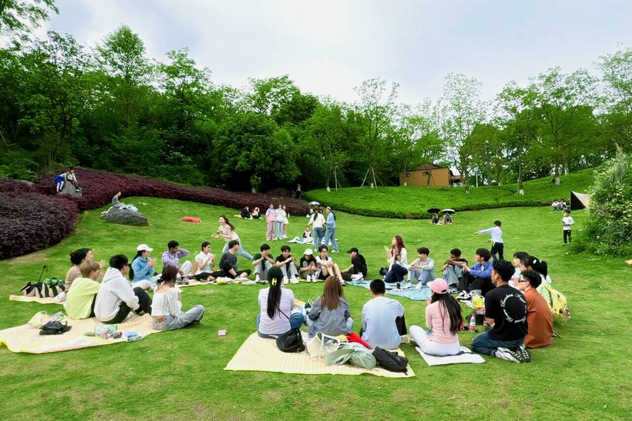 活动伊始,大家围坐草坪,在充满童趣的“丢手绢”游戏中,追逐奔跑,笑声与欢呼声此起彼伏,轻松的氛围打破了语言与国籍的边界,让大家卸下拘束、快速拉近距离。一旁的居民纷纷驻足,用手机记录下这欢乐瞬间,小朋友们也主动上前,热情地与留学生互动。