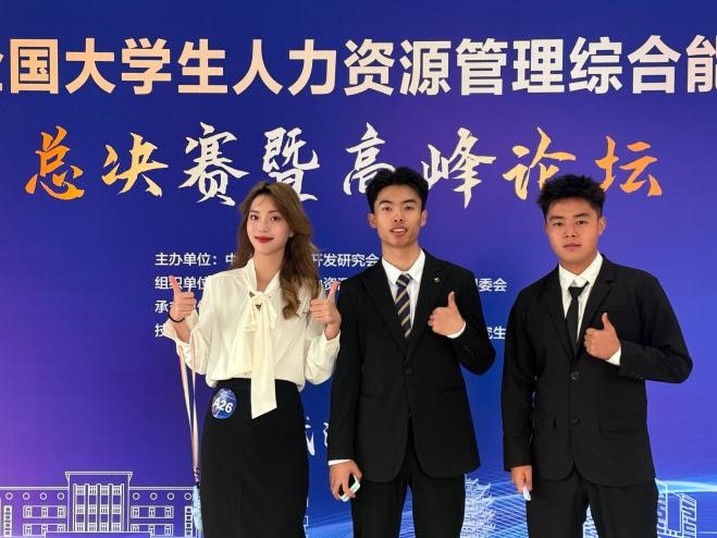2025年11月9日,第十届全国大学生人力资源管理综合能力竞赛全国总决赛在武汉理工大学落下帷幕。在我校人力资源管理专业李健、张钰玺两位教师的指导下,由王成、彭莞芸、谢诗繁三位同学组成的“星辰队”凭借扎实的专业基础和出色的实战能力,以总分94.16分的优异成绩荣获全国一等奖,位列全国153支参赛队伍之首。