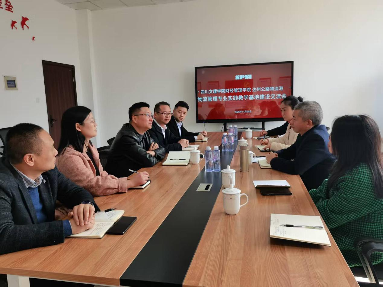 为扎实推进校外实践教学工作,加强学生实习实践与就业基地建设,进一步深化校企合作,提升应用型人才培养质量,11月26日上午,财经管理学院院长陈熙隆教授带队前往达州公路物流港,开展物流管理专业实践教学基地建设交流活动。达州市现代物流行业协会会长、达州公路物流港支部书记、执行董事贾冬,协会秘书长、物流港副经理李贤辉等陪同参与。