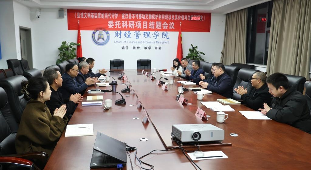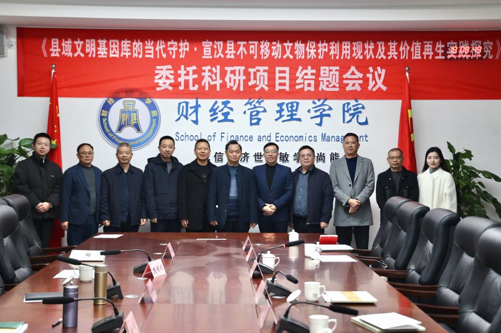11月30日,财经管理学院与宣汉县文物管理所横向科研项目《县域文明基因库的当代守护•宣汉县不可移动文物保护利用现状及其价值再生实践探究》结题仪式在A507会议室举行。宣汉县文物管理所所长冯周一行,学校科技处处长姜约,专家组成员靳能泉、刘长江、熊明川,学院党委书记、项目组组长刘天及课题组成员孙悦、何楠锋出席本次会议,会议由学院院长陈熙隆主持。